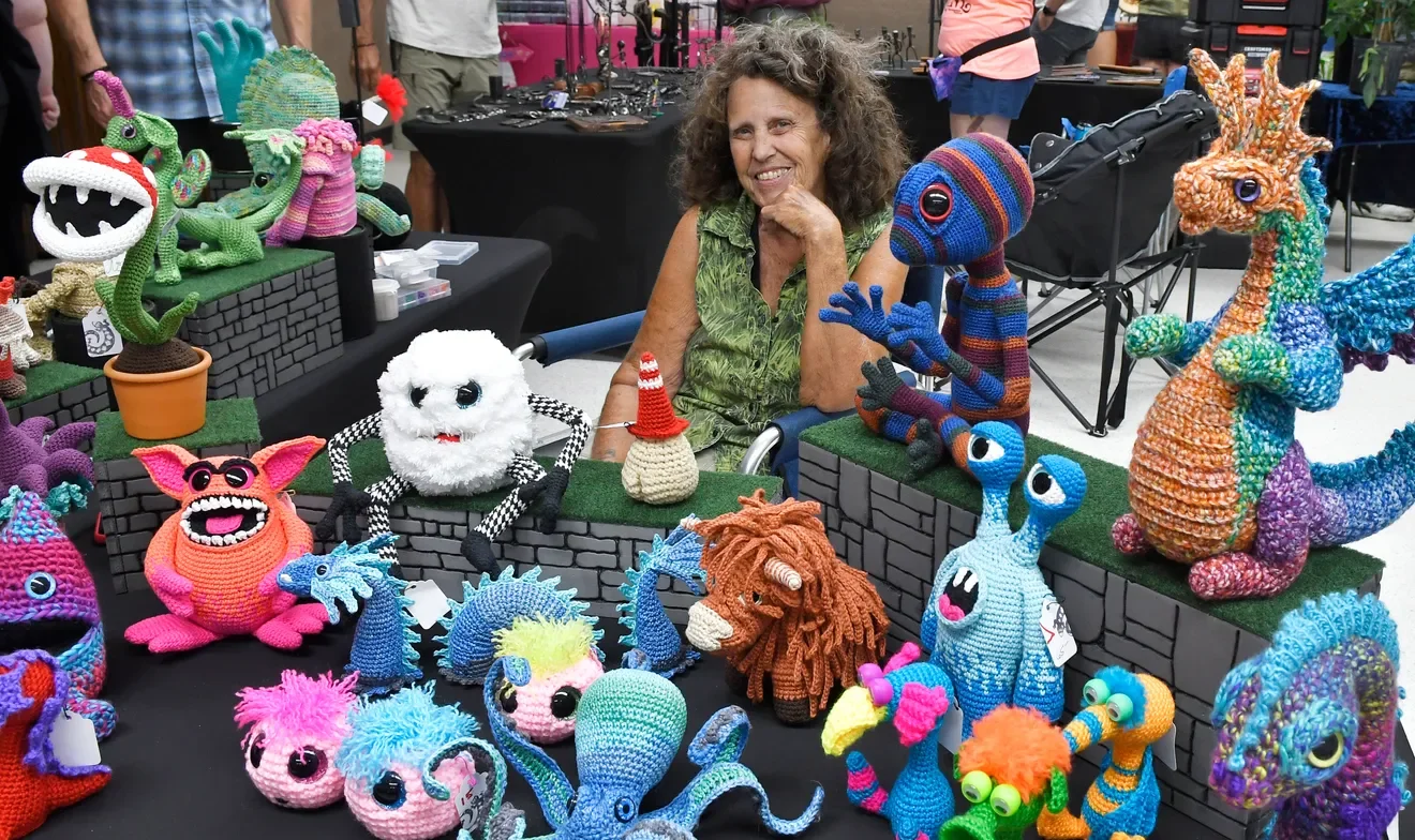 Nan Rhodes of Crochet in the Shade with some of her handmade fantasy creations. The Melbourne Oddities Expo was held August 10 from 12-4 p.m. at the Melbourne Auditorium. The free event was hosted by the Florida Oddities Market, and featured about 100 vendors selling a wide variety of curious and unique items.